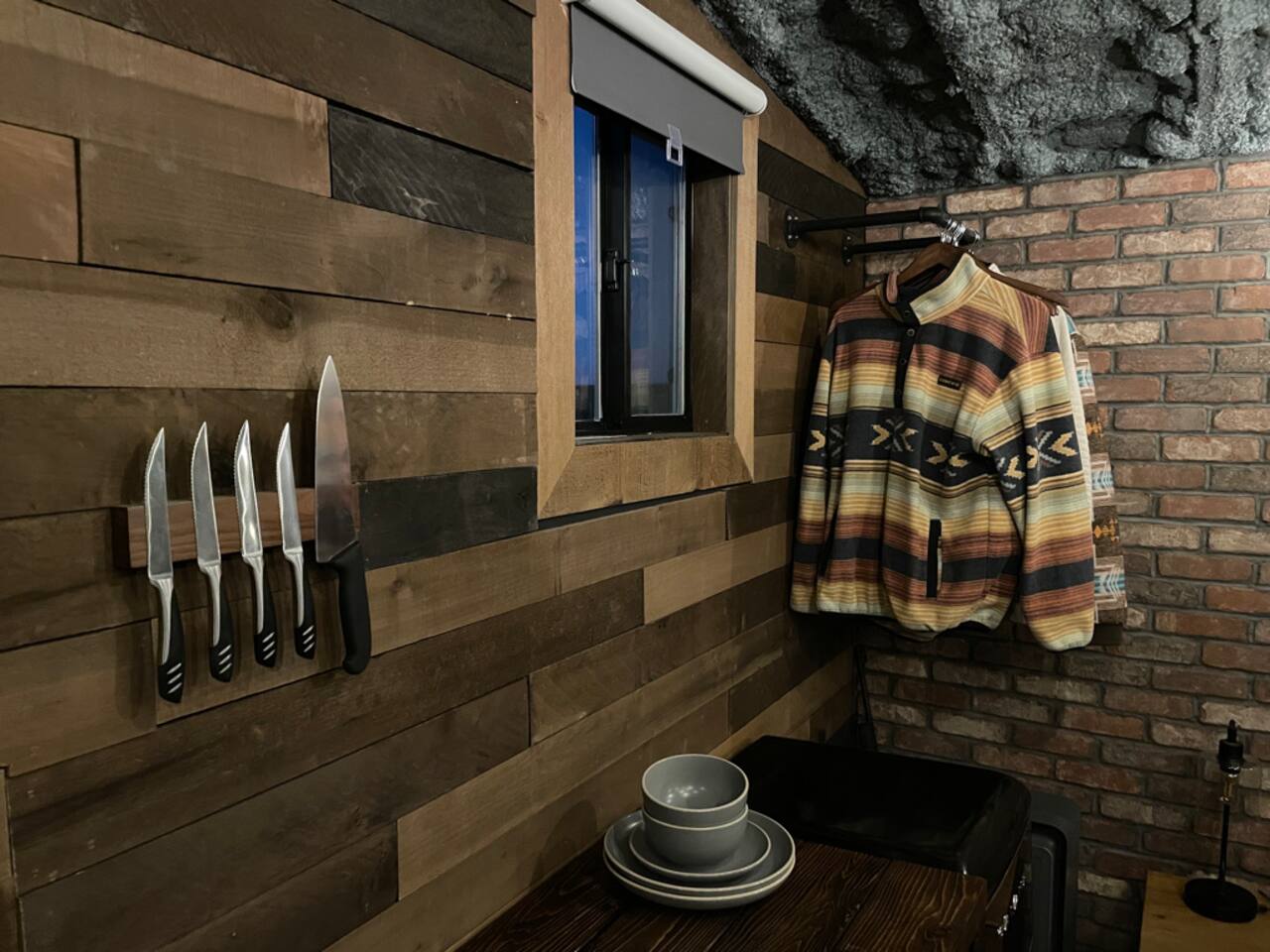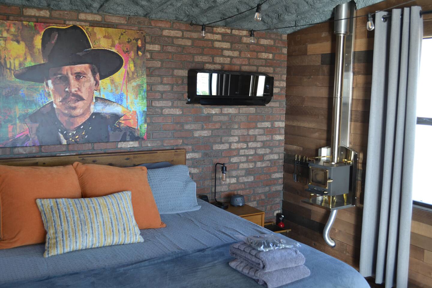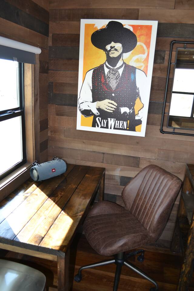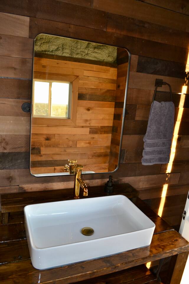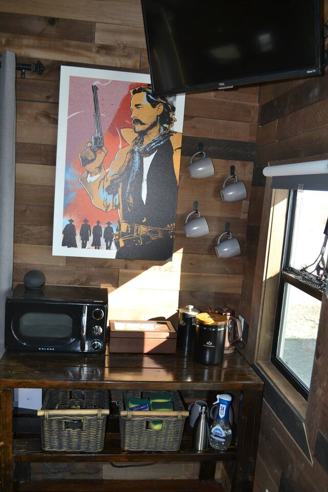 😄 What to Expect During Your Stay Welcome to your charming 225 sq ft cabin 🏡, where rustic comfort meets modern luxury in a seamless blend designed to enhance your stay. The cabin's warm wood and brick interior creates an inviting atmosphere, perfect for those seeking a peaceful retreat from everyday life. 🍽️ Culinary Comforts The kitchenette is well-equipped with a microwave, refrigerator, freezer, and various cooking tools including sharp steak knives, a chef's knife, pots, and pans. Begin your day with a robust cup of coffee from the French press ☕ or choose from an assortment of teas 🍵. Meals can be seasoned to perfection with provided salt and pepper and enjoyed on cloth napkins, adding a touch of elegance to your dining experience. 🍷 Dining and Work Space A practical desk space allows guests to stay connected or find inspiration for writing ✍️. The outdoor kitchen, featuring a sleek 12-foot concrete countertop under a shaded patio, is ideal for grilling 🍔 and dining during amazing sunsets 🌅 and sunrises 🌄. 🛏️ Luxurious Relaxation Sleep comfortably in a plush king bed 🛏️, with a mini-split AC and heating system to ensure comfort throughout the seasons ❄️☀️. The spacious outdoor bathroom boasts a 64 sq ft outdoor shower, offering hot showers with stunning mountain views 🏞️ for a truly rejuvenating experience. 🌅 Outdoor Elegance Unwind by a high-end, smokeless fire pit 🔥 from Breeo, surrounded by robust concrete chairs designed and built on-site that provide both style and stability. These are not just seating options but a testament to thoughtful craftsmanship. 🏓 Active Leisure Enjoy exclusive access to a private pickleball court, perfect for guests who appreciate active leisure. The court adds an exciting dimension to the stay, encouraging fun and active relaxation. Each element of this cabin has been carefully selected by your host to provide not just a place to stay, but a memorable experience. From gourmet morning coffees ☕ to serene evening sunsets 🌅, this cabin is a sanctuary for those looking to enrich their lives with nature and comfort.