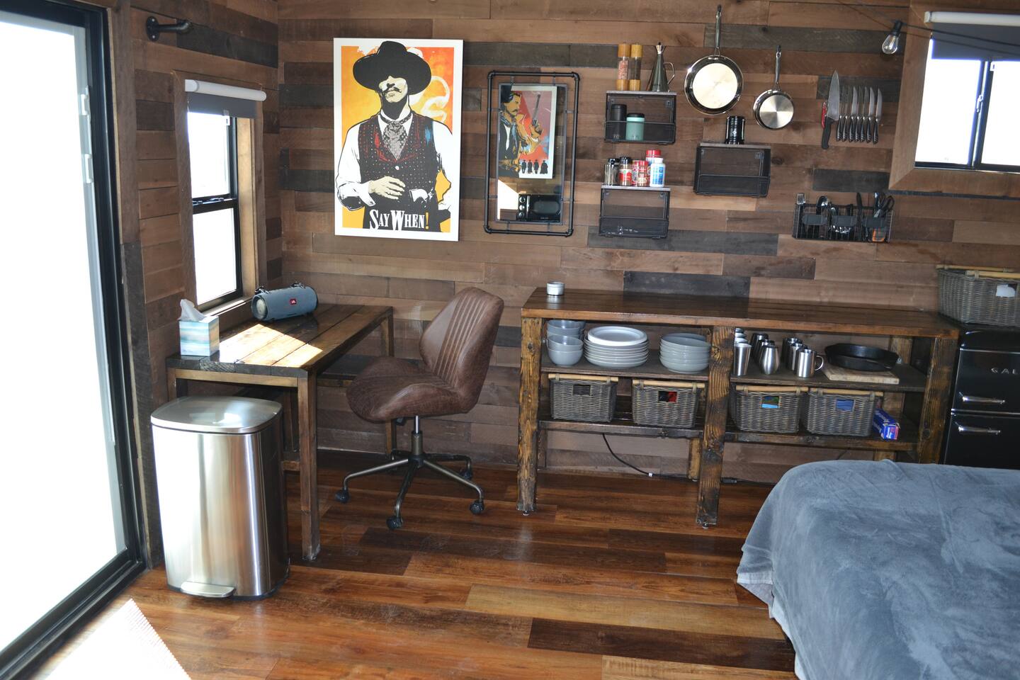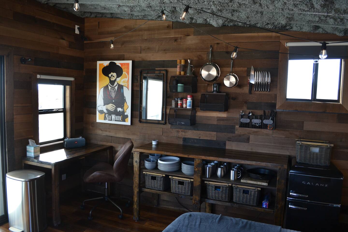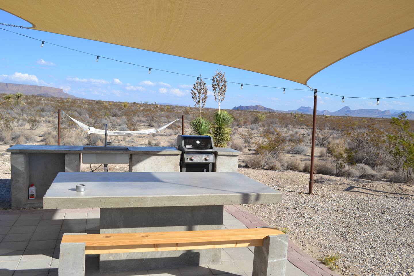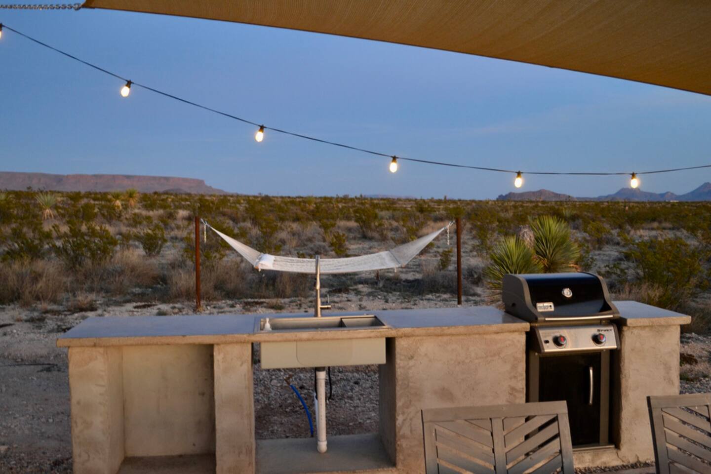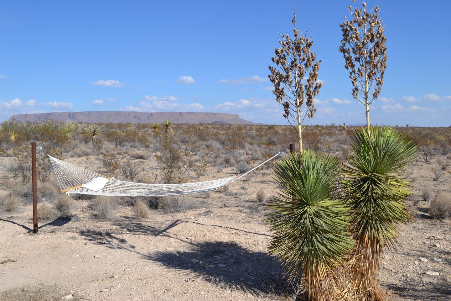 Little Burro Country Store is only a mile away and you can get beer, ice, and snacks there. Sometimes you can get high quality meat from West Texas Cattle Co there too. The location is ideal for a West Texas vacation because you can easily get to the park, Alpine, or Marfa.