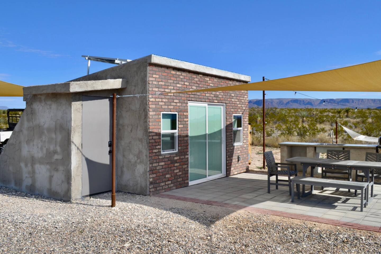 Imagine an outdoor shower under breathtaking sunsets with expansive mountain views. Fire up the grill on 12 ft of concrete countertops in your outdoor kitchen. Enjoy serene nights of stargazing and retire to elite, quiet A/C and Netflix - wake up ready for adventurous hikes.